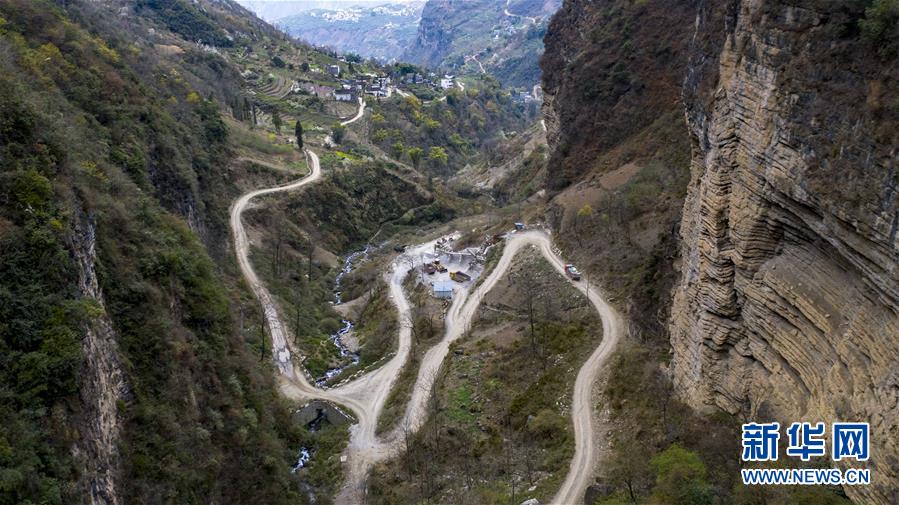 搬家的貨車行駛在云南省永善縣大興鎮(zhèn)駱丘村通往山外崎嶇的山路上(3月14日攝,無人機照片)。 新華社記者 江文耀 攝