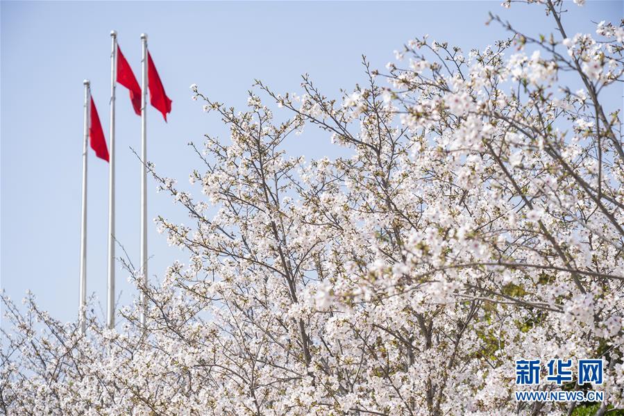 在武漢市武昌區(qū)被網(wǎng)友稱為“武漢最美停車場”的湖北日報停車場,櫻花開放(3月19日攝)。 新華社記者 才揚 攝