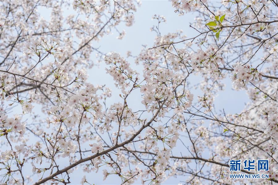 在武漢市武昌區(qū)被網(wǎng)友稱為“武漢最美停車場”的湖北日報停車場,櫻花開放(3月19日攝)。 新華社記者 才揚 攝