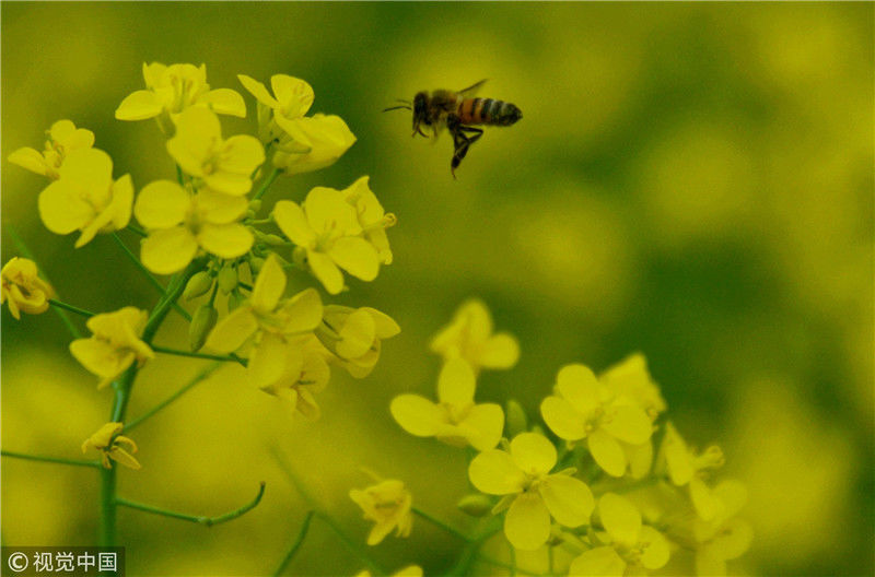 2019年2月5日,廣西來(lái)賓,當(dāng)天是農(nóng)歷大年初一,人們?cè)谛贸强h城關(guān)鎮(zhèn)隆光村油菜花海中賞花游玩。