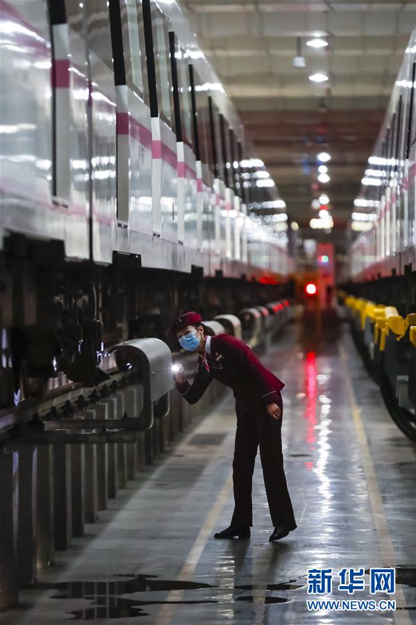 3月28日,武漢地鐵運(yùn)營(yíng)有限公司司機(jī)吳亞在常青車輛段檢查車輛情況。新華社記者沈伯韓攝