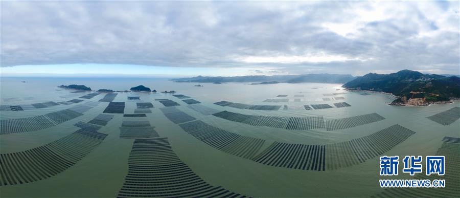 這是11月4日無(wú)人機(jī)拍攝的霞浦縣長(zhǎng)春鎮(zhèn)的紫菜種植區(qū)(拼接照片)。近日,福建省霞浦縣沿海6萬(wàn)畝紫菜迎來(lái)收獲季節(jié),漁民們出海收獲紫菜,海上田園一派繁忙豐收景象。新華社記者姜克紅攝