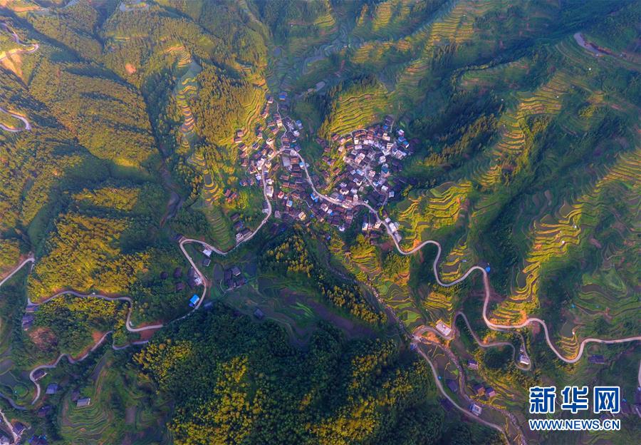 這是融水苗族自治縣桿洞鄉(xiāng)黨鳩村烏英苗寨的公路(4月18日無人機(jī)拍攝)。新華社記者黃孝邦攝