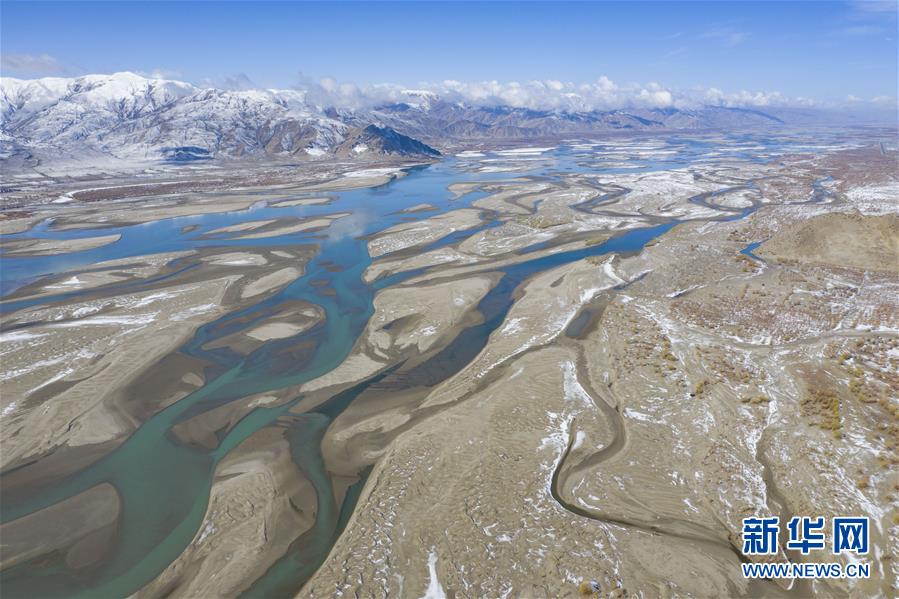 雅魯藏布江兩岸銀裝素裹雪景美如畫