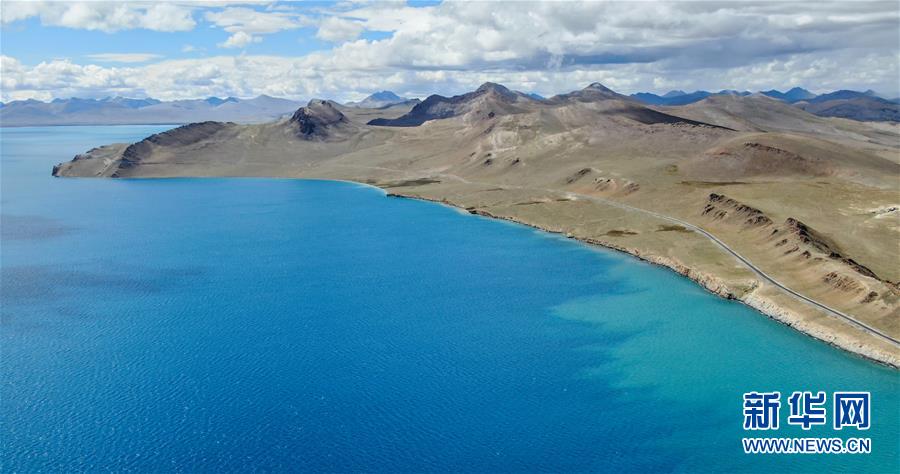 8月31日無人機(jī)拍攝的羊卓雍錯及邊上的307省道。新華社記者晉美多吉攝