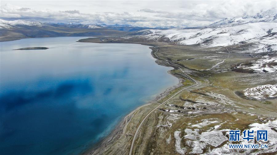 普姆雍錯湖緊挨著公路,是自駕游的理想目的地(9月19日無人機(jī)拍攝)。新華社記者晉美多吉攝