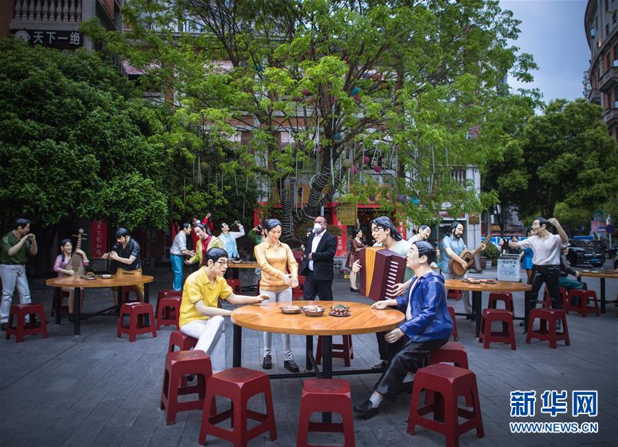4月1日,在武漢天地廣場(chǎng),人們?cè)谙硎艽汗?。新華社記者費(fèi)茂華攝