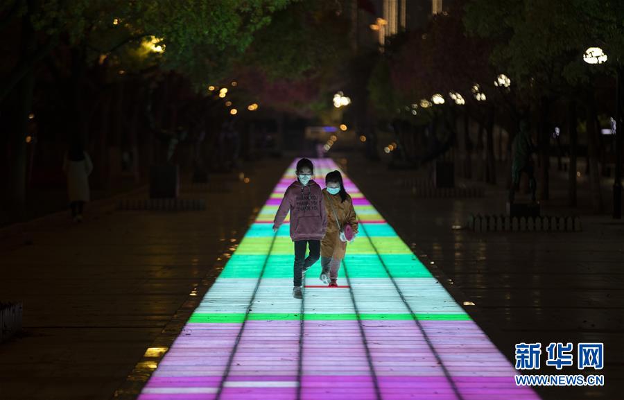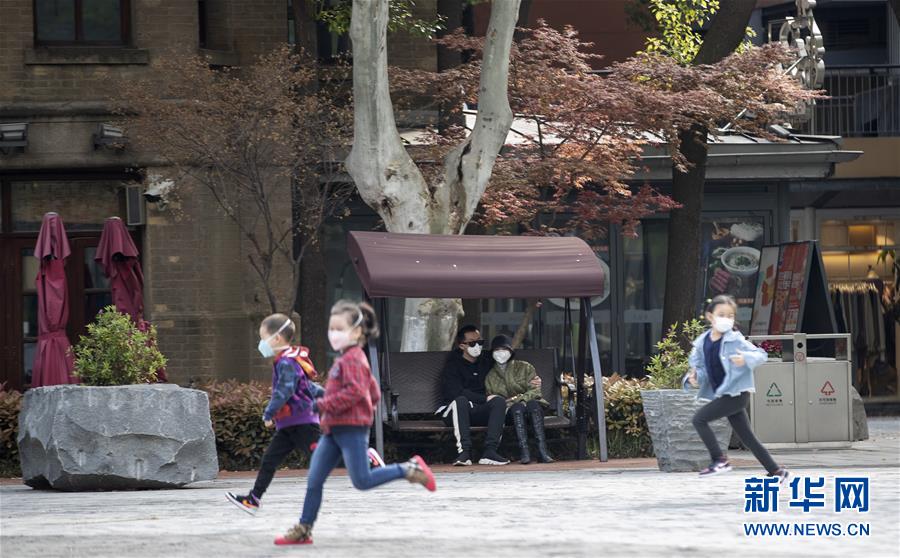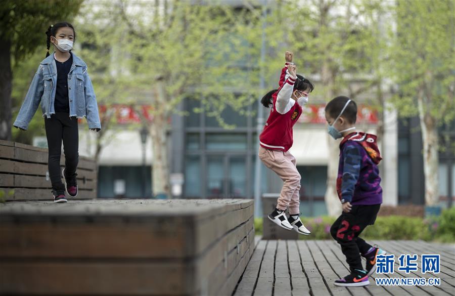 4月1日,在武漢天地廣場(chǎng),幾個(gè)小朋友在玩耍。新華社記者費(fèi)茂華攝