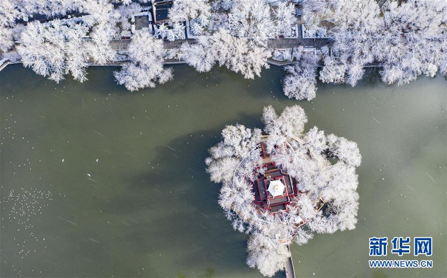 4月5日拍攝的拉薩宗角祿康公園雪景(無(wú)人機(jī)照片)。新華社記者普布扎西攝