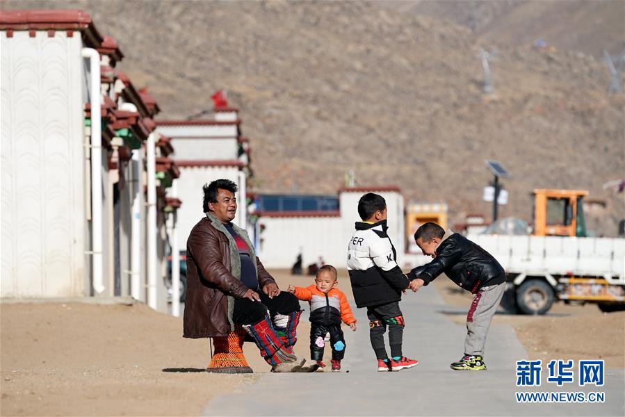 在拉薩市堆龍德慶區(qū)古榮鄉(xiāng)榮瑪高海拔生態(tài)搬遷點(diǎn),美瓊(左一)和孩子們?cè)诩议T(mén)口玩耍(4月1日攝)。美瓊一家在搬遷點(diǎn)分到一套120平米的房子。美瓊還和朋友合伙在搬遷點(diǎn)的扶貧綜合門(mén)面房租了一間店面,開(kāi)了一家銷(xiāo)售日用品的小商店。新華社記者 詹彥 攝