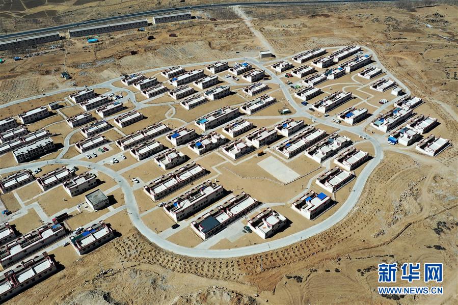 拉薩市堆龍德慶區(qū)古榮鄉(xiāng)榮瑪高海拔生態(tài)搬遷點(diǎn)一景(4月1日攝,無(wú)人機(jī)照片)。新華社記者 詹彥 攝