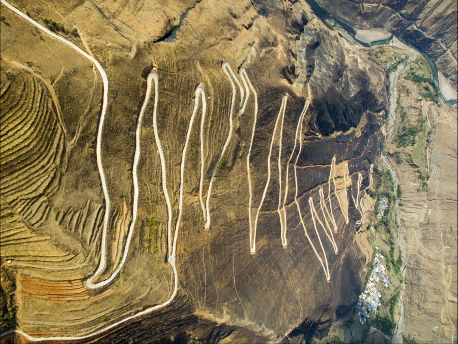 這是“怒江72拐”,該處位于西藏自治區(qū)昌都市八宿縣境內(nèi),是川藏線上一段艱險(xiǎn)與美景并存的山路(10月23日無人機(jī)拍攝)。全長2000多公里的川藏公路,從成都開始,一路向西到終點(diǎn)拉薩,在橫斷山脈、喜馬拉雅山脈和念青唐古拉山脈間蜿蜒盤旋,因海拔落差大,彎道眾多,形成天路奇觀。川藏公路1954年12月25日通車,65年來,國家對川藏公路進(jìn)行了大規(guī)模改造升級,建設(shè)了眾多橋梁和隧道,行車條件得到明顯改善。新華社記者江宏景攝