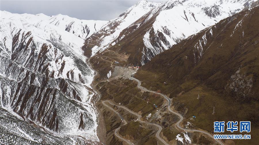 這是318國道剪子彎山段,大雪過后銀裝素裹(10月17日無人機(jī)拍攝)。新華社記者江宏景攝