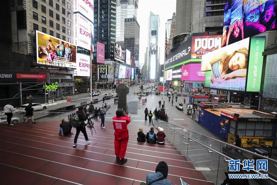3月19日,人們?cè)诶淝宓拿绹?guó)紐約曼哈頓時(shí)報(bào)廣場(chǎng)上參觀。美國(guó)約翰斯·霍普金斯大學(xué)發(fā)布的實(shí)時(shí)統(tǒng)計(jì)數(shù)據(jù)顯示,截至美國(guó)東部時(shí)間19日17時(shí)30分(北京時(shí)間20日5時(shí)30分),美國(guó)新冠肺炎確診病例累計(jì)13060例,死亡175例。受新冠肺炎疫情影響,紐約等疫情嚴(yán)重的地區(qū)執(zhí)行多項(xiàng)減少人口聚集的措施,昔日的鬧市如今已冷冷清清。新華社記者王迎攝