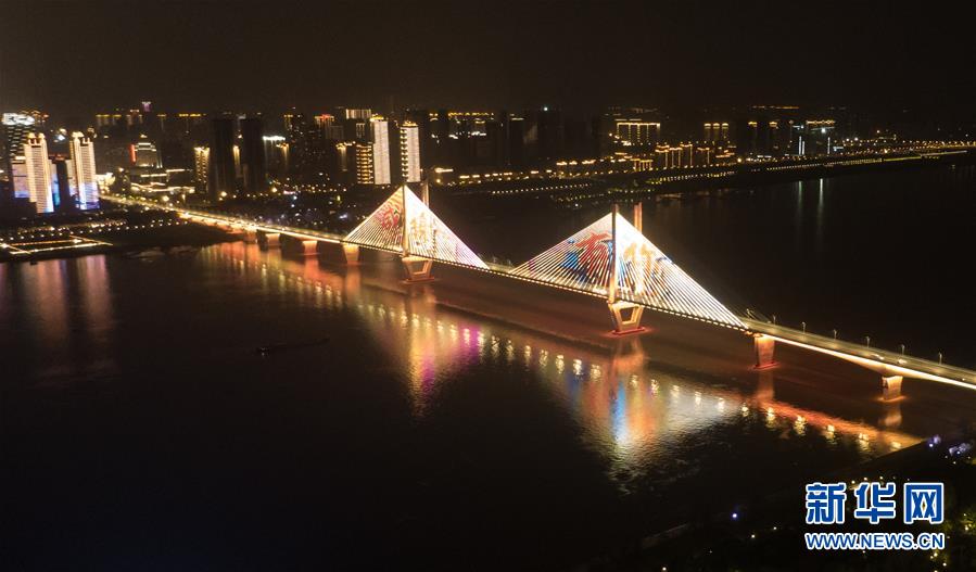 4月8日零時起,武漢市正式解除離漢離鄂通道管控措施,全市景觀照明開啟(無人機(jī)照片)。新華社記者程敏攝