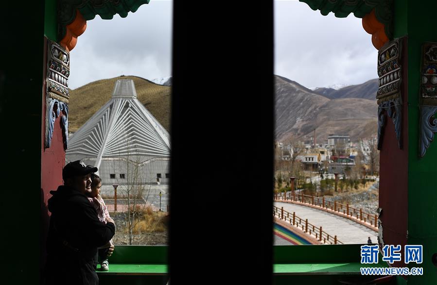 4月10日,才仁俄賽在餐廳向外張望。新華社記者吳剛攝