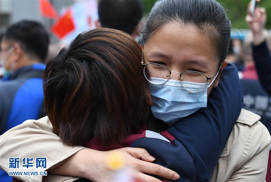 4月21日,在四川大學(xué)華西醫(yī)院,醫(yī)療隊(duì)隊(duì)員和家人相互擁抱。當(dāng)日,來自四川大學(xué)華西醫(yī)院、華西第二醫(yī)院、華西第四醫(yī)院的醫(yī)療隊(duì)隊(duì)員解除隔離休整,與分別許久的家人、同事團(tuán)聚,緊緊相擁。新華社記者王曦攝