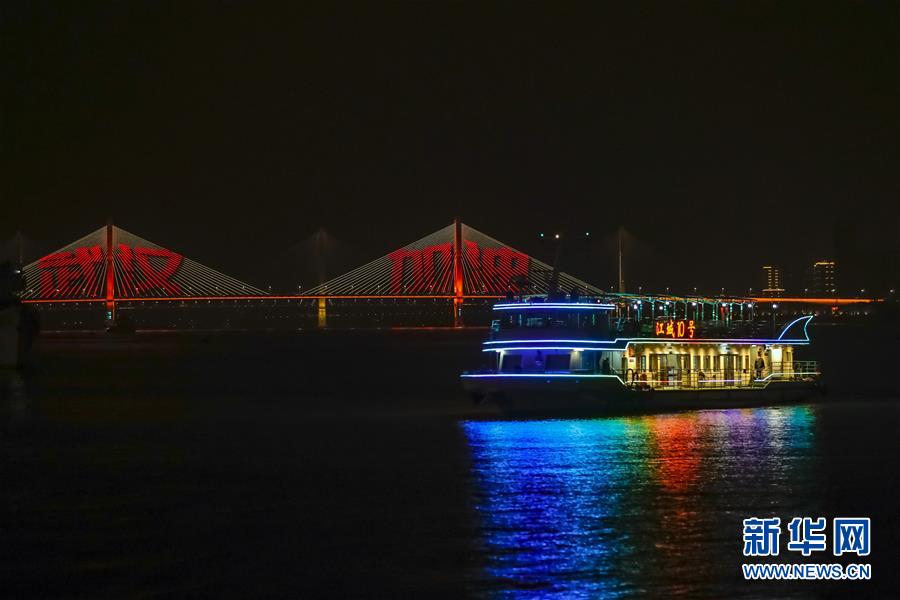 4月22日,市民乘坐武漢長江客運(yùn)輪渡出行時,在船上拍攝夜景。為建立與經(jīng)濟(jì)社會發(fā)展和疫情防控需要相適應(yīng)的運(yùn)輸服務(wù)保障機(jī)制,保障市民出行需求,從4月22日起,武漢城市公共交通有序恢復(fù)全線網(wǎng)運(yùn)營。新華社記者沈伯韓攝