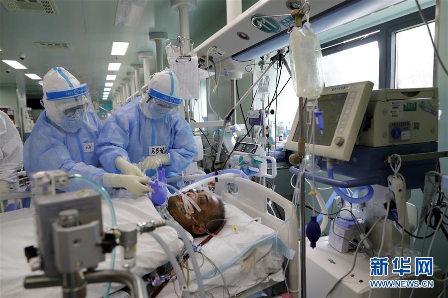 4月24日,在位于武漢的華中科技大學(xué)同濟(jì)醫(yī)學(xué)院附屬協(xié)和醫(yī)院西院,醫(yī)務(wù)人員何玨(左)和馬夢琳在護(hù)理核酸檢測結(jié)果轉(zhuǎn)陰的新冠肺炎病人。新華社記者沈伯韓攝