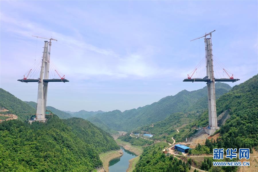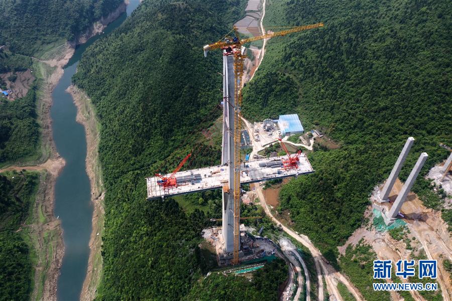 這是建設(shè)中的遵余高速湘江大橋(4月26日攝,無人機(jī)照片)。近日,由中鐵廣州局承建的貴州遵余高速湘江大橋工程在做好疫情防控的同時,全力恢復(fù)生產(chǎn)建設(shè)。目前工程進(jìn)展順利,正在進(jìn)行主橋鋼梁架設(shè),預(yù)計將于8月底合龍。據(jù)了解,遵余高速湘江大橋橋梁全長1700余米,主跨560米。新華社記者劉續(xù)攝