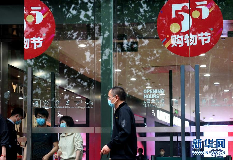 上海一家商場布置的“五五購物節(jié)”標識(5月5日攝)。5月4日晚,上海首次啟動大規(guī)模商業(yè)促銷活動“五五購物節(jié)”,多家在線新經(jīng)濟企業(yè)參與,通過線上流量優(yōu)勢反哺線下賣場,實現(xiàn)電商與實體零售融合互動,激活消費潛力、驅(qū)動消費復蘇。據(jù)“上海發(fā)布”的消息,截至5日14時12分,“五五購物節(jié)”上海地區(qū)消費支付總額已超100億元。新華社記者劉穎攝