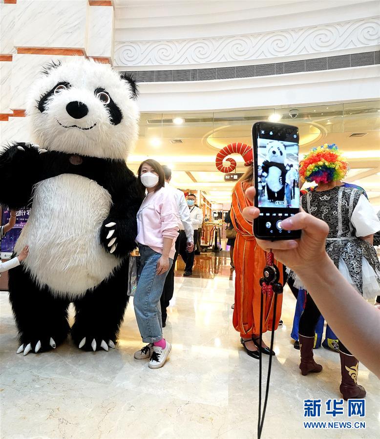 5月5日,顧客在上海環(huán)球港商場(chǎng)與大熊貓人偶合影。5月4日晚,上海首次啟動(dòng)大規(guī)模商業(yè)促銷活動(dòng)“五五購(gòu)物節(jié)”,多家在線新經(jīng)濟(jì)企業(yè)參與,通過線上流量?jī)?yōu)勢(shì)反哺線下賣場(chǎng),實(shí)現(xiàn)電商與實(shí)體零售融合互動(dòng),激活消費(fèi)潛力、驅(qū)動(dòng)消費(fèi)復(fù)蘇。據(jù)“上海發(fā)布”的消息,截至5日14時(shí)12分,“五五購(gòu)物節(jié)”上海地區(qū)消費(fèi)支付總額已超100億元。新華社記者陳飛攝