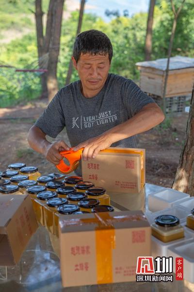 2020年5月3日,湖北省襄陽市,在南漳三道河水庫小島上,小島養(yǎng)蜂人趙德海正在打包蜜蜂,準備發(fā)貨。