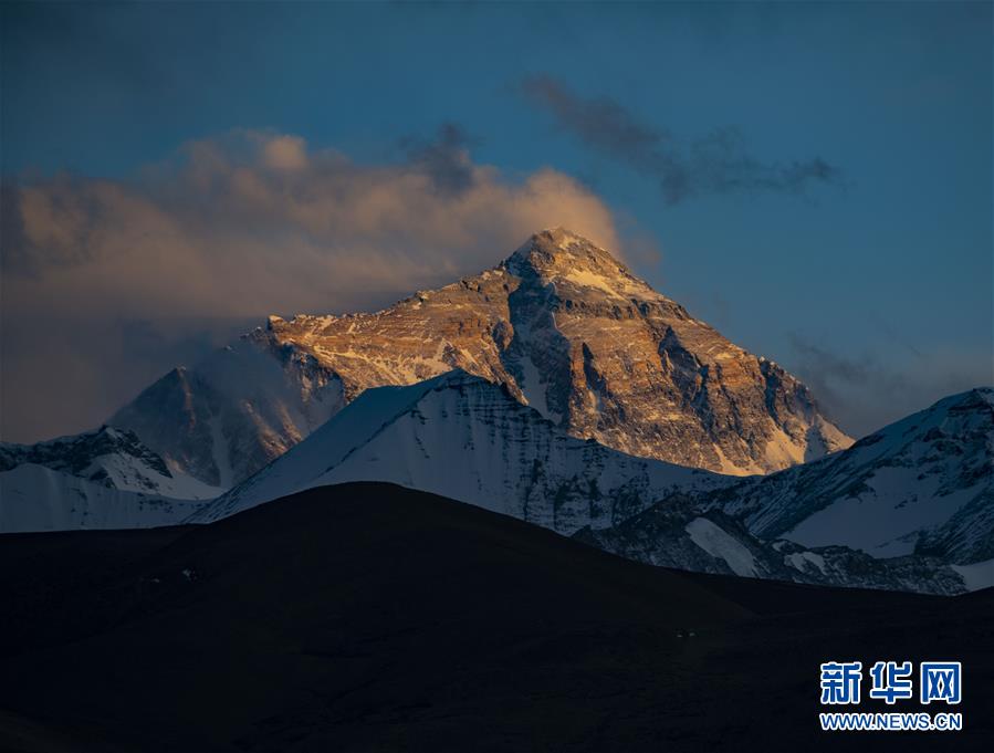這是5月3日拍攝的夕陽下的珠峰。世界第一高峰珠穆朗瑪峰終年積雪,頂峰云霧繚繞,美不勝收。新華社記者普布扎西攝