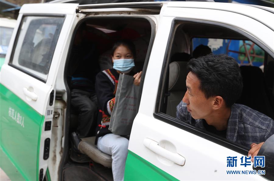 5月12日,在四川省昭覺縣阿土列爾村,莫色雄體(右)坐上車準(zhǔn)備前往昭覺縣易地扶貧搬遷縣城集中安置點的新家。新華社記者江宏景攝