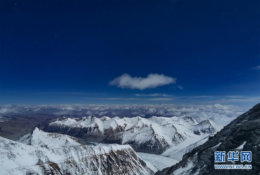 從珠峰海拔7028米以上拍攝的壯美景色(5月12日攝)。從珠峰海拔7028米的一號(hào)營地繼續(xù)向上攀登,沿途景色十分壯美。新華社特約記者拉巴攝