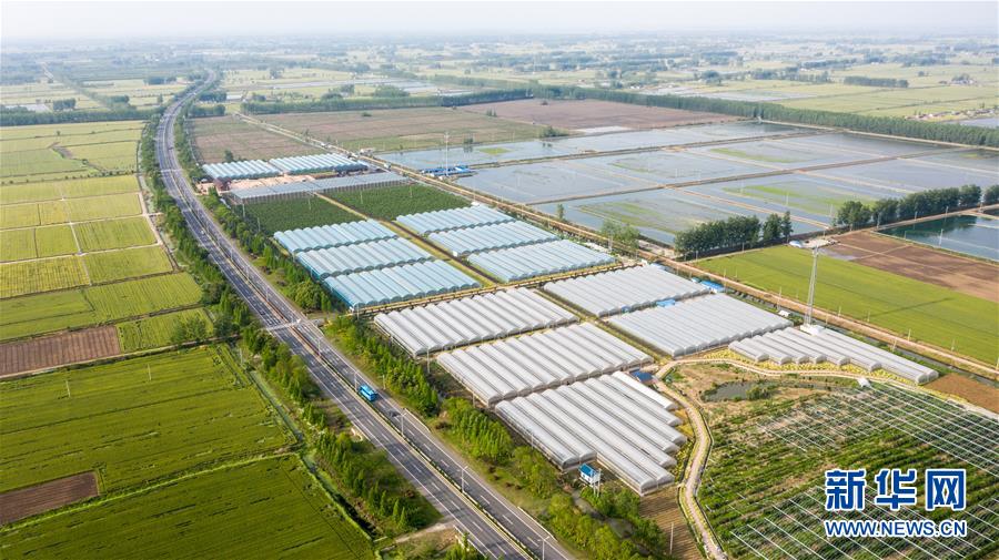 這是5月11日拍攝的金湖縣萬(wàn)畝連片農(nóng)業(yè)示范帶(無人機(jī)照片)。