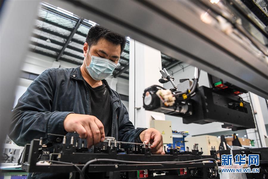 5月14日,工人在江蘇先河激光技術(shù)有限公司組裝調(diào)試全自動(dòng)皮秒激光切割機(jī)。江蘇省宿遷市2016年初啟動(dòng)建設(shè)宿遷激光產(chǎn)業(yè)園,目前,園區(qū)共有激光及相關(guān)配套企業(yè)50余家,涉及激光切割、激光打標(biāo)、激光醫(yī)療等。當(dāng)?shù)夭粩嗤晟茍@區(qū)配套設(shè)施,推動(dòng)激光產(chǎn)業(yè)集聚,打造激光研發(fā)、裝備制造和加工應(yīng)用的完整產(chǎn)業(yè)鏈。新華社記者李博攝