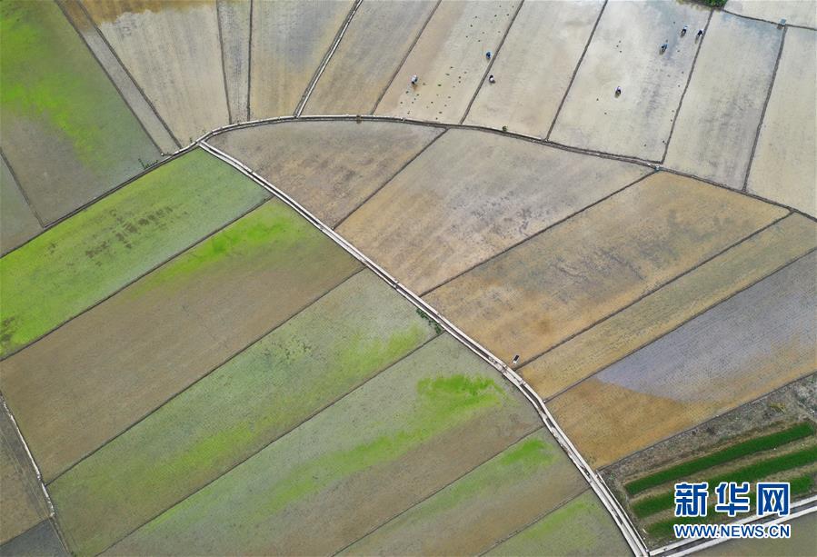 這是廣西南丹縣田園風(fēng)光(4月30日攝,無(wú)人機(jī)照片)。新華社記者周華攝