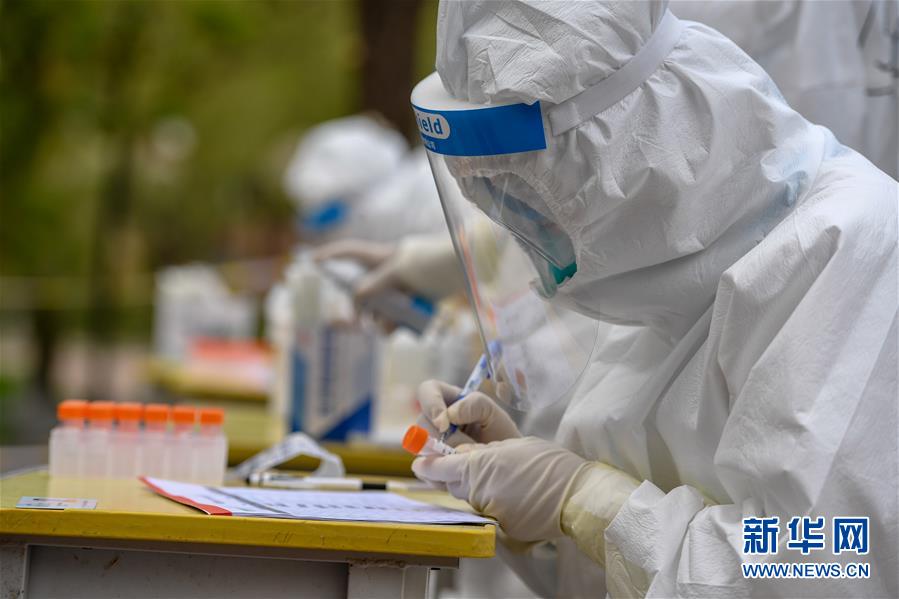 5月15日,在舒蘭市建馨園小區(qū),工作人員進(jìn)行采樣準(zhǔn)備工作。當(dāng)日,從吉林市7家市直醫(yī)院抽調(diào)的300名護(hù)士經(jīng)培訓(xùn)后,全部投入到舒蘭市(隸屬于吉林市)核酸采樣工作中。為提供追溯傳染源所必需的核酸檢測相關(guān)數(shù)據(jù),舒蘭市根據(jù)確診病例的活動(dòng)軌跡,將流調(diào)和核酸檢測范圍擴(kuò)大至本地確診病例和無癥狀感染者的次密接人員及一般接觸者。新華社記者張楠攝