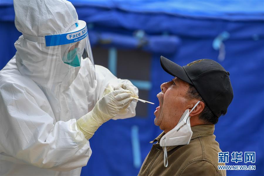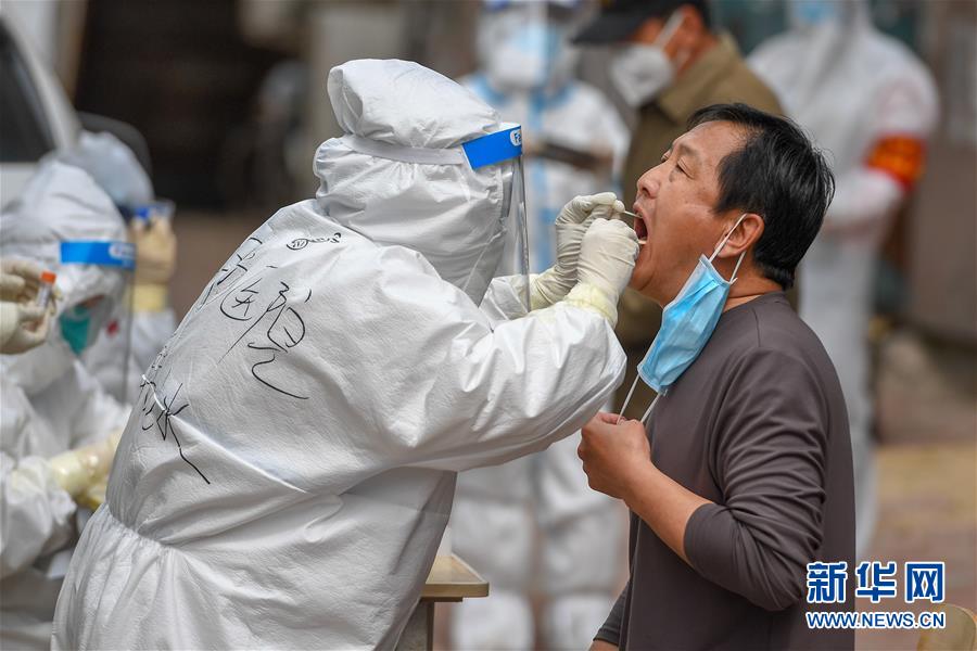 5月15日,在舒蘭市建馨園小區(qū),工作人員為居民采集咽拭子。當(dāng)日,從吉林市7家市直醫(yī)院抽調(diào)的300名護(hù)士經(jīng)培訓(xùn)后,全部投入到舒蘭市(隸屬于吉林市)核酸采樣工作中。為提供追溯傳染源所必需的核酸檢測相關(guān)數(shù)據(jù),舒蘭市根據(jù)確診病例的活動(dòng)軌跡,將流調(diào)和核酸檢測范圍擴(kuò)大至本地確診病例和無癥狀感染者的次密接人員及一般接觸者。新華社記者張楠攝