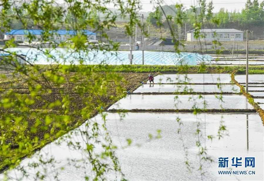 5月17日,在吉林省長(zhǎng)春市雙陽(yáng)區(qū)徐家村,農(nóng)民在水稻田間耕作。新華社記者許暢攝