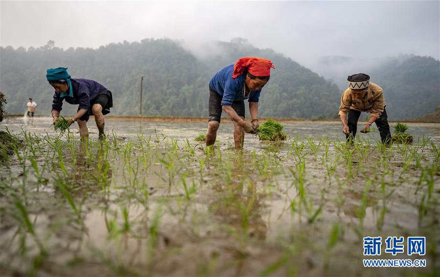 村民在地里插秧(3月26日攝)。新華社記者江文耀攝