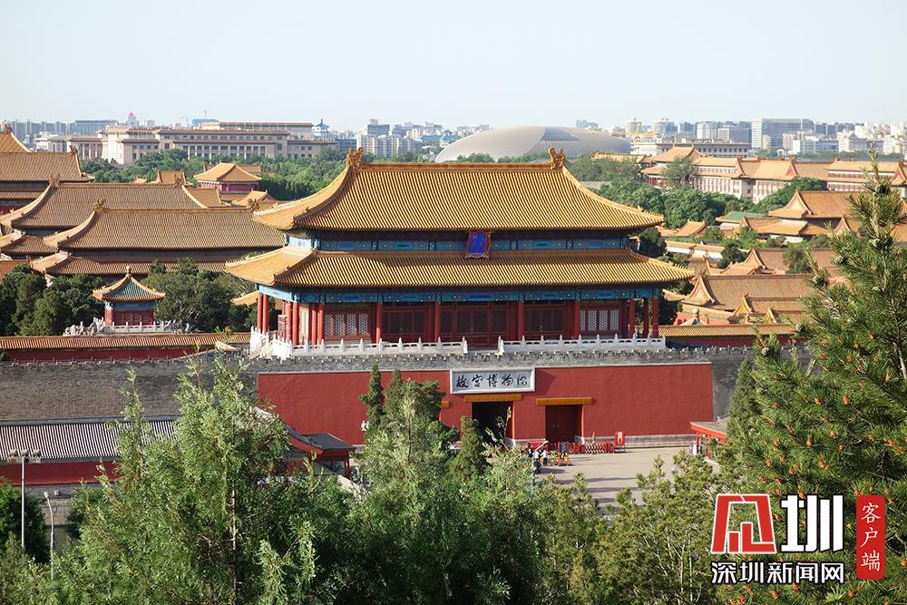 北京碧空萬里 游客登景山公園賞故宮美景