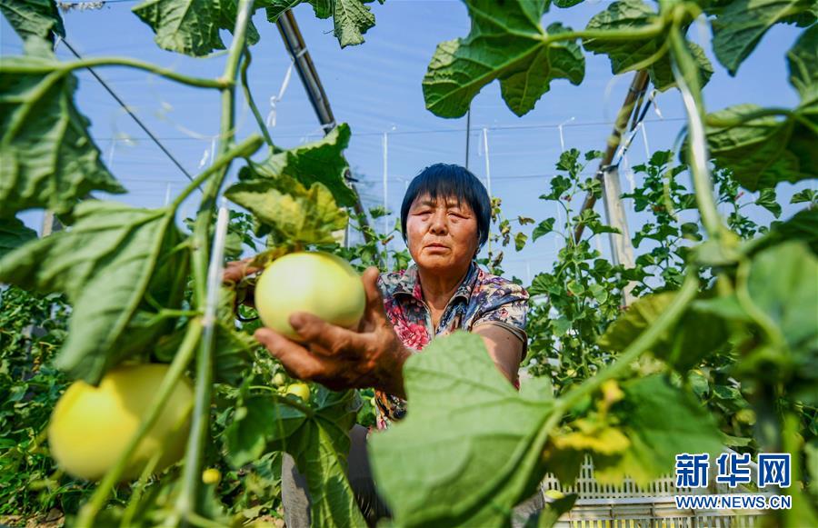 5月20日,新河縣尋寨鎮(zhèn)桃園村村民在采摘甜瓜。近年來(lái),河北省新河縣尋寨鎮(zhèn)在推進(jìn)農(nóng)業(yè)供給側(cè)結(jié)構(gòu)性改革中,把甜瓜種植作為扶貧產(chǎn)業(yè)項(xiàng)目。村集體把部分閑置的土地流轉(zhuǎn)給本村有就業(yè)能力的貧困戶(hù),并引導(dǎo)他們規(guī)?;N植甜瓜,帶動(dòng)群眾脫貧增收。新華社記者王曉攝