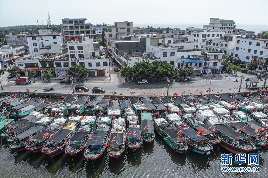這是5月21日拍攝的??吭诤D檄偤J刑堕T鎮(zhèn)的漁船(無人機照片)。5月1日12時起,我國渤海、黃海、東海和北緯12度以北的南海海域進入海洋伏季休漁期。海南瓊海市潭門鎮(zhèn)的漁民利用休漁時間對船體、機械設備、網(wǎng)具等進行維修、保養(yǎng),保證休漁結束后以最好狀態(tài)出海捕撈。新華社記者張麗蕓攝