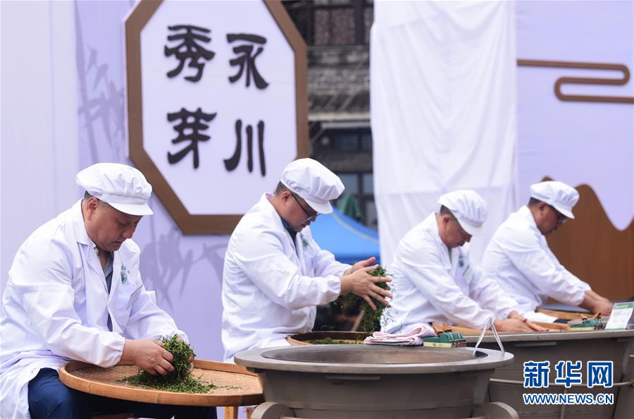 5月22日,炒茶師在斗茶大會(huì)上表演制茶。當(dāng)日,2020永川秀芽第四屆斗茶大會(huì)在重慶市永川區(qū)舉行,22家從事茶葉生產(chǎn)加工的企業(yè)參加大會(huì)。近年來,永川區(qū)把茶葉產(chǎn)業(yè)確立為農(nóng)業(yè)特色產(chǎn)業(yè)大力扶持,2019年全區(qū)茶葉種植面積近10萬畝。新華社記者 王全超 攝