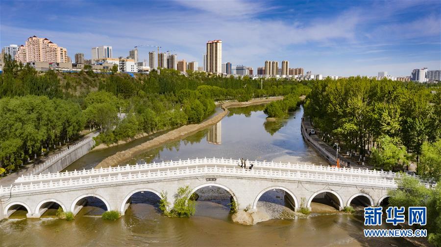 5月24日拍攝的榆林市榆溪河生態(tài)長廊(無人機照片)。新華社記者陶明攝