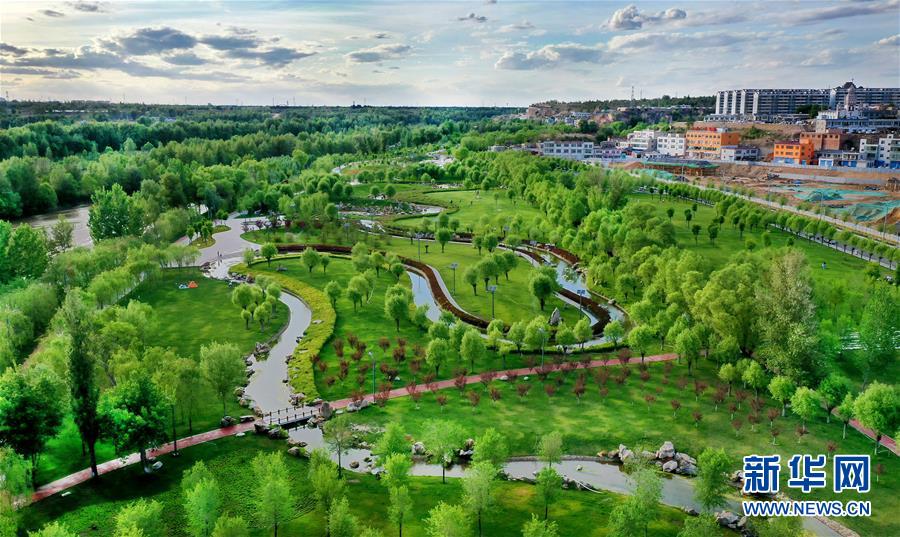 5月24日拍攝的榆林市河濱公園(無人機照片)。新華社記者陶明攝