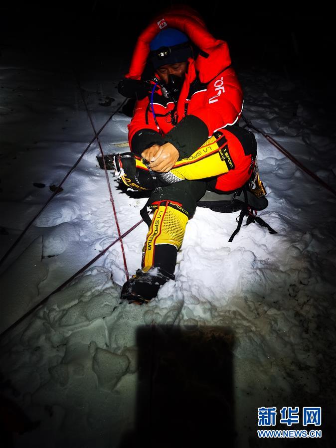5月27日,2020珠峰高程測(cè)量登山隊(duì)從海拔8300米的突擊營(yíng)地出發(fā)。新華社特約記者扎西次仁攝