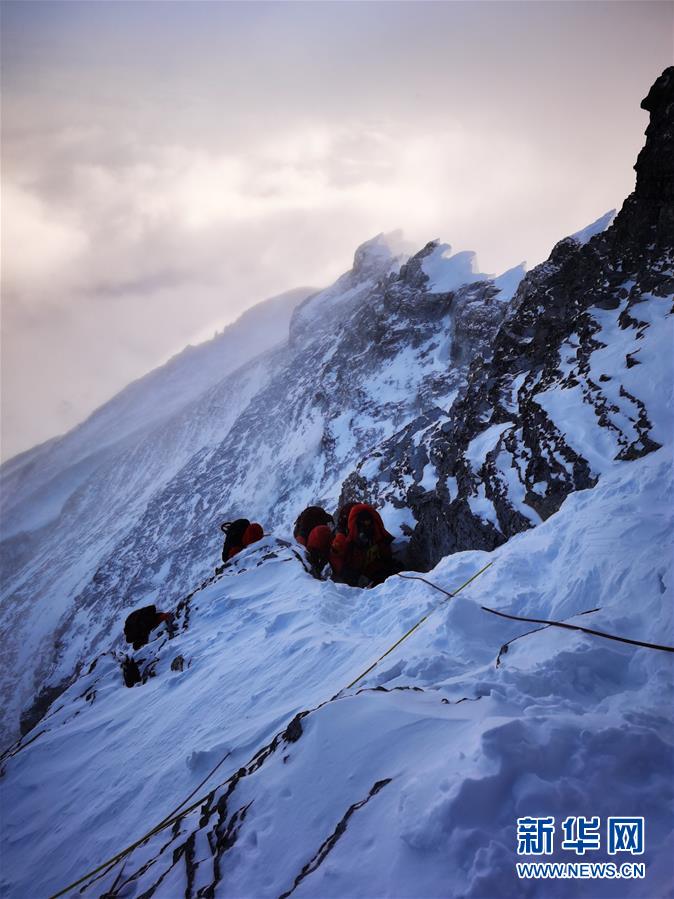 5月27日,2020珠峰高程測(cè)量登山隊(duì)正在向珠峰峰頂進(jìn)發(fā)。新華社特約記者扎西次仁攝