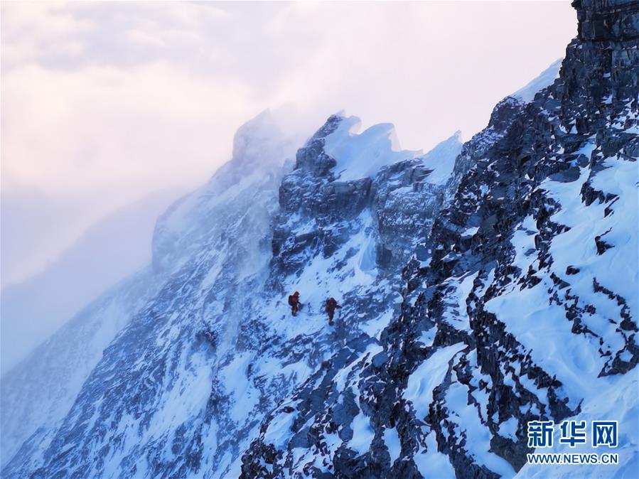 5月27日,2020珠峰高程測(cè)量登山隊(duì)正在向珠峰峰頂挺進(jìn)。新華社特約記者扎西次仁攝