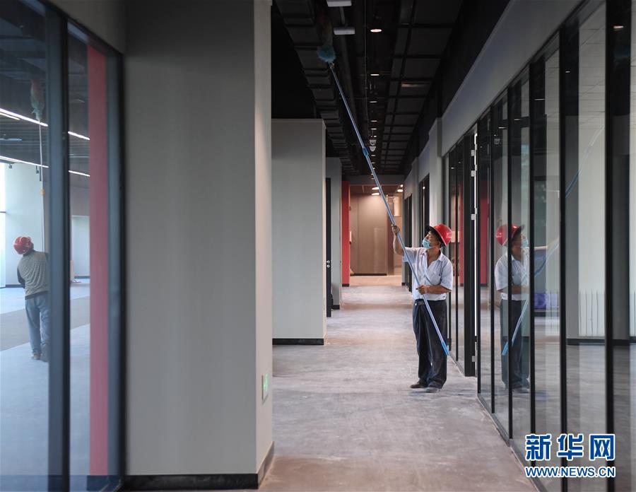 5月27日,保潔人員在“冰壇”內(nèi)部進(jìn)行保潔工作。新華社記者張晨霖攝