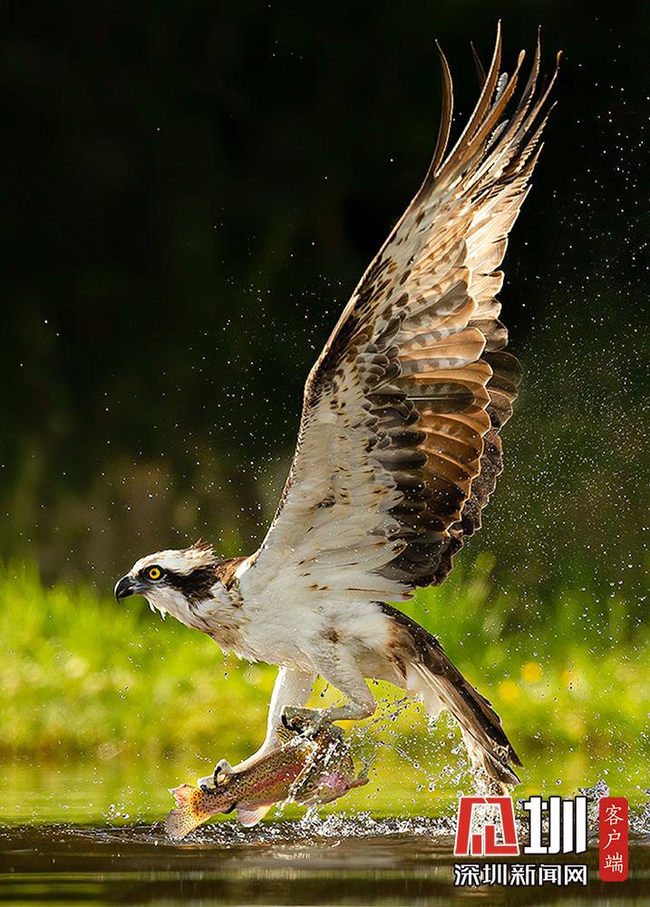 2020年5月28日報道(具體拍攝時間不詳),54歲的Gladys Klip來自荷蘭,是一名銀行助理,他在蘇格蘭高地拍攝到魚鷹捕魚的精彩照片。畫面中,魚鷹快速俯沖而下,掠過水面,鷹爪隨即從水中成功抓起一條魚兒,濺起水花,整個過程精彩詮釋快準狠。Gladys Klip稱他在早晨5點的時候已經(jīng)在等候拍攝。