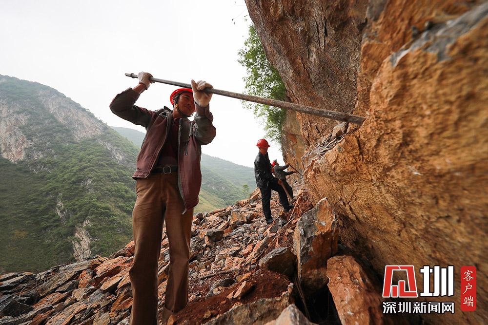 2020年5月27日,在貴州省畢節(jié)市納雍縣化作鄉(xiāng)雙巖頭村,村民義務參加修路。