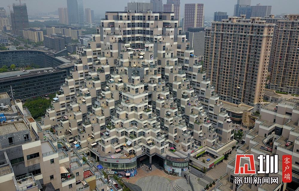 2018年7月29日,航拍江蘇省昆山市花橋國(guó)際商務(wù)城游站未來(lái)城小區(qū),空中俯瞰,由三棟樓盤(pán)組成的該小區(qū)造型奇特,高低錯(cuò)落有致,酷似“金字塔”。